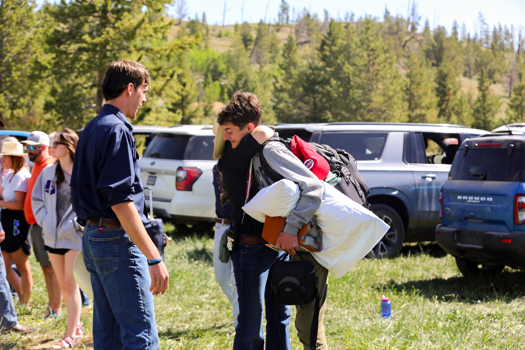 If you are driving to the Ranch, note that we are about 2 hours from Jackson (plus some, if there are bison on the road). Our driveway is 4 miles long, and you will be greeted by a few barn staff members on horseback- please drive slowly! Dropoff itself is very streamlined: drop off luggage to be taken to your camper’s cabin, a brief medical check in, a quick hug, kiss, handshake, fistbump, or whatever your family’s farewell may be, and off your camper goes for a month of adventure! Getting campers integrated into their cabin group and camp life as quickly as possible has shown great results in lowering homesickness.